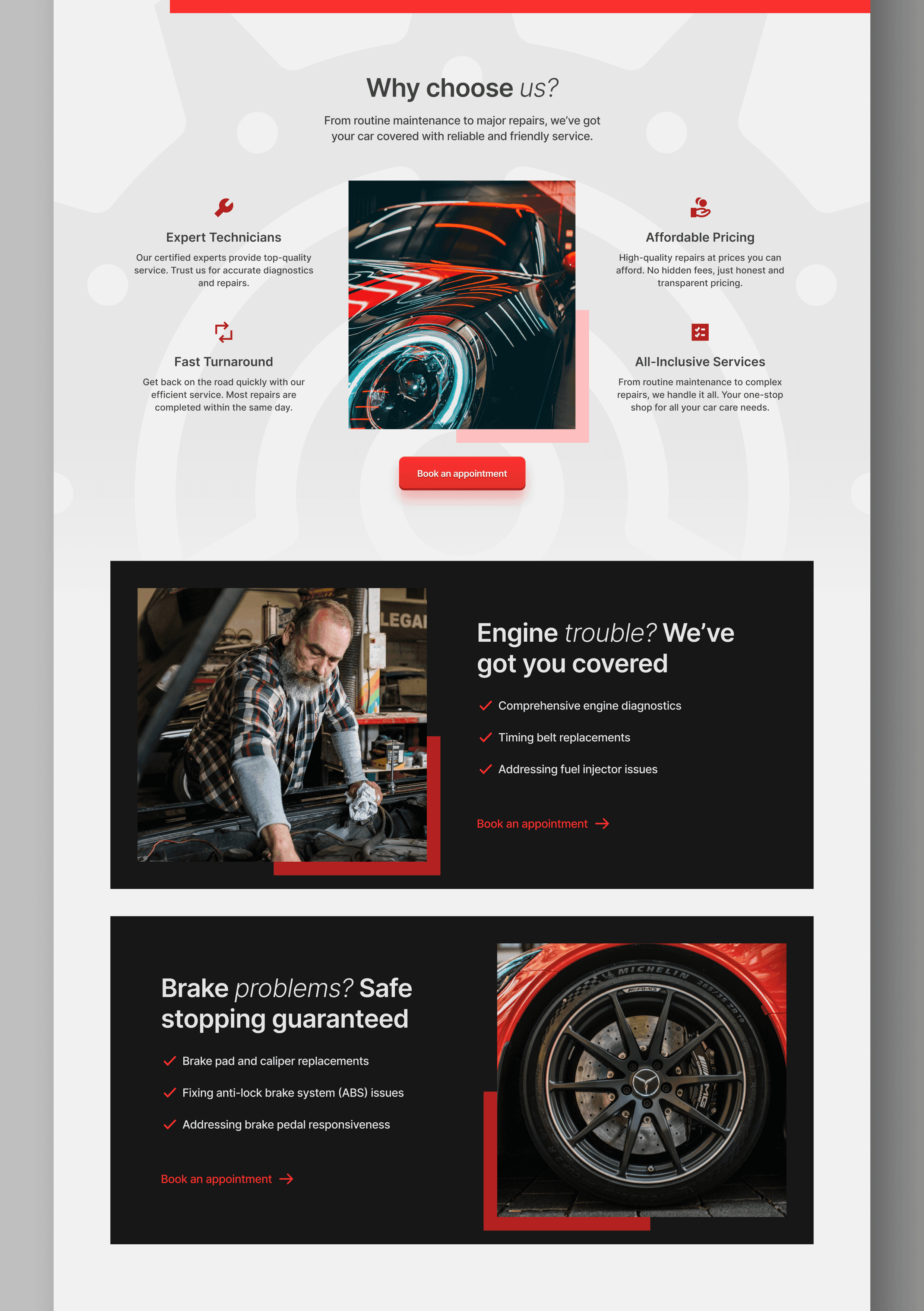 By focusing on clean design and a streamlined user journey, we created a website that simplifies navigation and highlights the services Car Fix excels at. With clear calls to action and an organized structure, the new site ensures visitors can easily book appointments, explore services, and trust Car Fix for their repair needs.