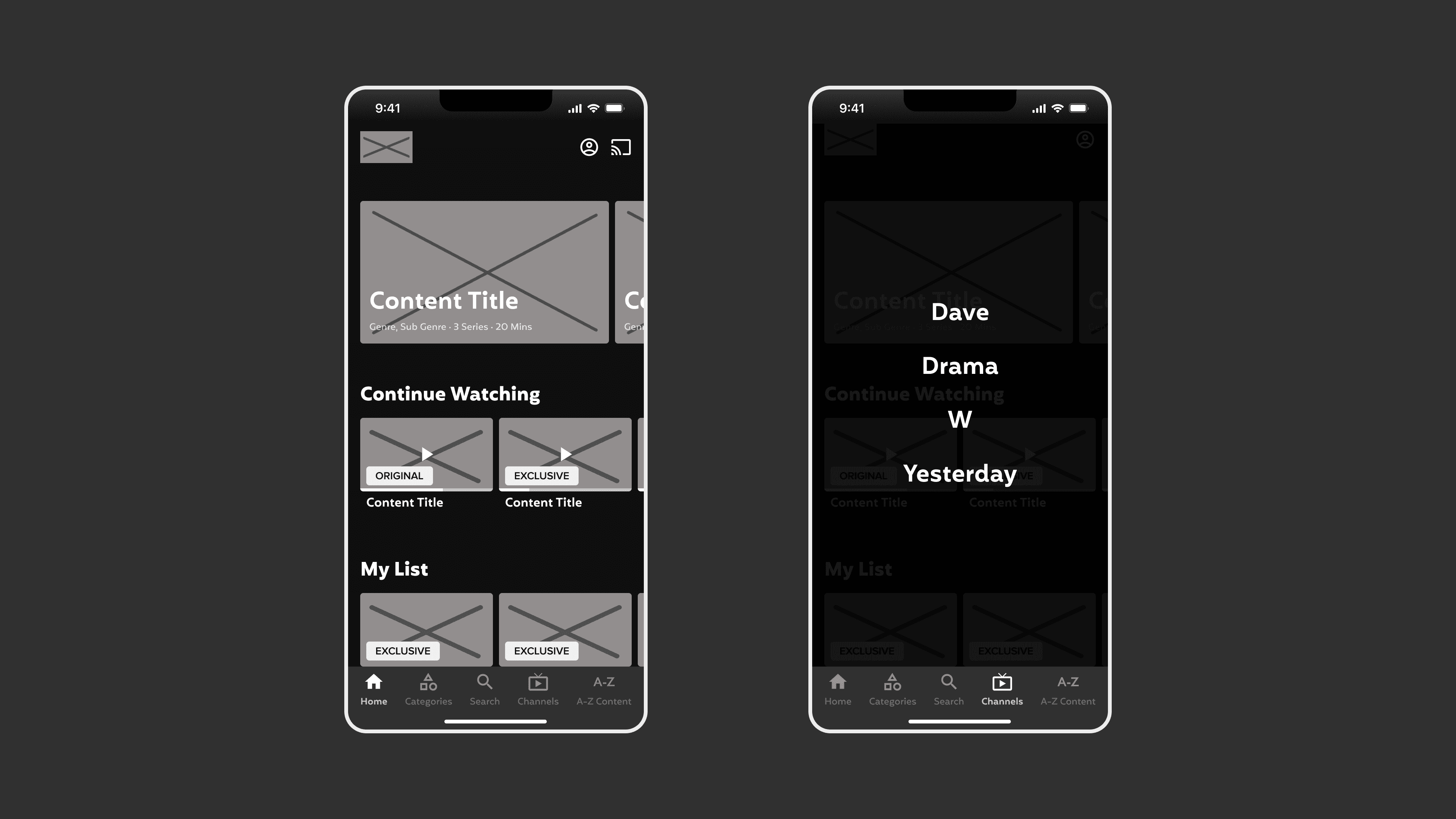 Using our research and persona insights, we translated user needs into structured wireframes. This step laid the foundation for an intuitive, user-friendly UKTV Play experience.